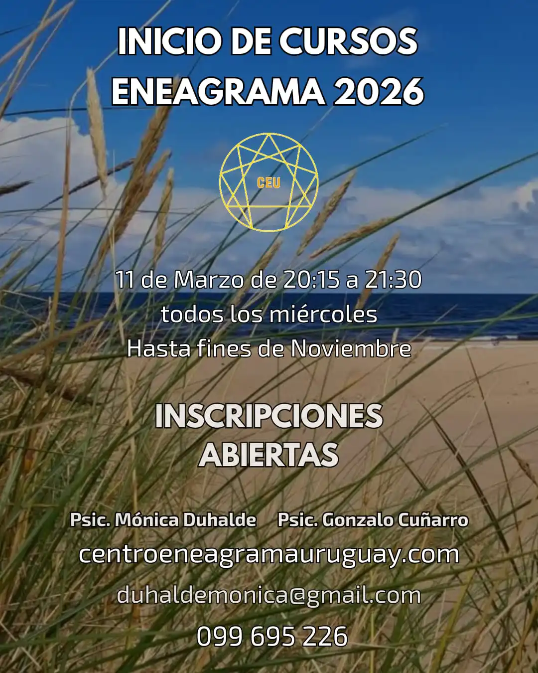 La IEA Uruguay NO certifica ni avala las publicaciones abajo expuestas. Nuestros asociados cuentan gratuitamente con este espacio para la difusión de sus actividades docentes y profesionales relacionadas con el Eneagrama.